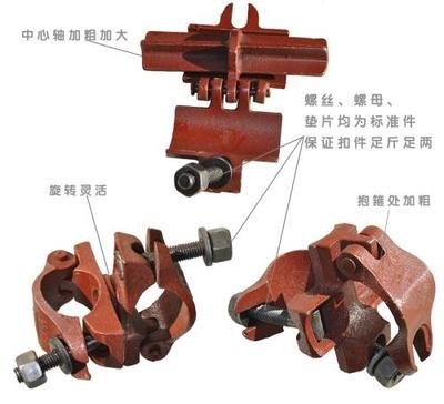4、關于扣件的承載量,作業(yè)層上的施工荷載應符合設計要求,不得超載,要承載重量,腳手架不得與模板支架相連,相連時要進行處理,確??奂暮侠沓胁弥亓?。 新型國標扣件是經(jīng)過國家工程監(jiān)督檢驗中心的嚴格檢測,抗滑性、抗摔性、抗變形性能良好,適用于多種建筑工程中,能有效提高腳手架的穩(wěn)定和施工人員的安全。