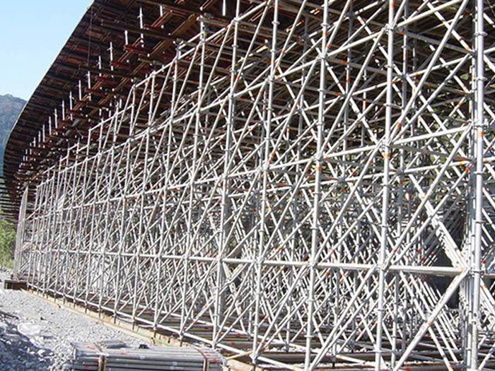 輪扣式腳手架是一種具有自鎖功能的直插式新型鋼管腳手架,具有承載力大,搭建速度快,穩(wěn)定性強(qiáng),易于場(chǎng)地管理等特點(diǎn)。